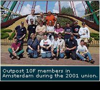 In August 2001 a large union was held in Amsterdam, The Netherlands where many of the members put their heads together, made lots of notes, and hatched a new idea - "The Vision for the Future." Six days of hard work and conversation followed by an intense month of Executive brainstorming produced a document that would take Outpost 10F to the next level. The "Vision Plan" was kicked off in October 2001. After months and months of hard work, "v2" (version 2.0) of Outpost 10F was launched on July 15th, 2002. The v2 release contains substantial technical upgrads that will better position Outpost 10F to achieve its goals.