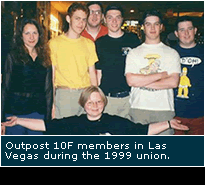 August 1999 saw the commissioning of the new site name "Outpost 10F" and something really new - a union! An Outpost 10F union is an event in the "real world" where members of the community have the opportunity to meet face-to-face. The union was held in Las Vegas and attended by 25 people who enjoyed a weekend of conversing and visiting the various sites of interest.